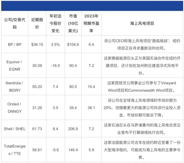 至少有三个州的八家跨国公司已经悄然开始退出海上风电合同,或者要求以将更多成本转嫁给消费者的方式重新谈判。除壳牌外,这些公司还包括英国石油(BP)、丹麦能源公司Orsted(DNNGY)、挪威的Equinor(EQNR)、西班牙的Iberdrola(IBDRY)、葡萄牙的Energias de Portugal(EDPFY)、法国的Engie(ENGIY)和法国国有企业Electricite de France。