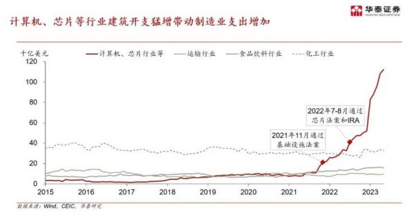 今年一季度财政对增长的贡献非常大,往前看也不一定会明显回落,因为芯片法案去年10月份才开始真正实施,很多的支出可能要今年二季度、三季度才显现出来。