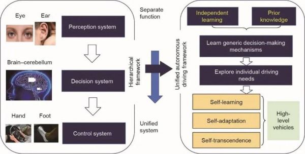图5. 结合基于规则和基于学习方法的统一自动驾驶汽车框架。高等级自动驾驶汽车应从分层框架转移到统一框架。