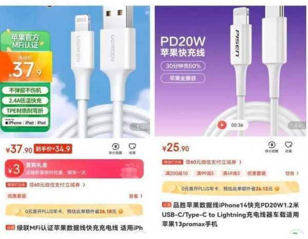 另外,未通过MFi认证的数据线在消费者眼中普遍会被打上安全性差、充电速度慢等标签。据业内人士透露,没有MFi认证虽然也可以销售苹果产品的配件,但通过MFi认证的产品在价格和销量上都有一定优势。