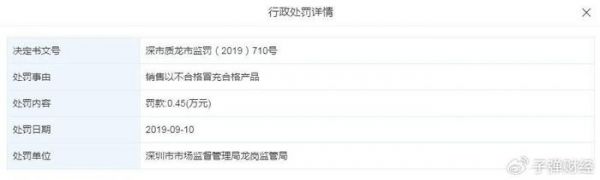 天眼查显示,品胜电子曾因为产品质量问题被监管部门处罚。2018年12月,公司因为产品质量违法行为被深圳市市场监督管理局龙岗局罚款1.8万元,没收违法所得和财物;2019年9月,品胜电子以不合格产品冒充合格产品销售被深圳市市场监督管理局龙岗局罚款4500元。