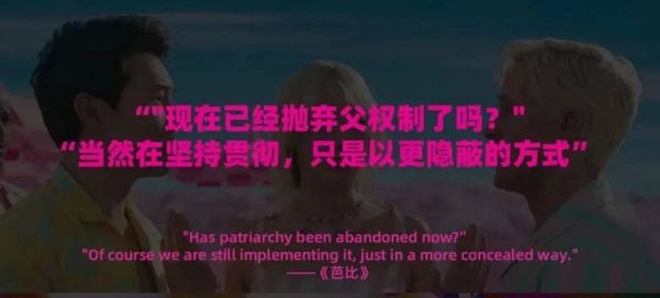 把男性作为整体的辱骂和反对对象,比如说“《芭比》上映男宝集体破防”之类的,这最终只会把能够争取和团结的男性声音也全部赶到对立面。这样的氛围会导致性别对立的激化,我个人感觉把全体男性塑造成邪恶共同体,不是明智的选择。