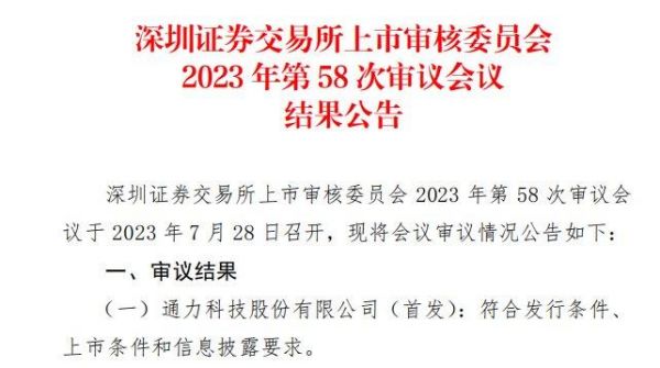 集微网消息 7月28日,据深圳证券交易所上市审核委员会2023年第58次审议会议结果显示,通力科技股份有限公司(简称:通力股份)主板IPO成功过会。