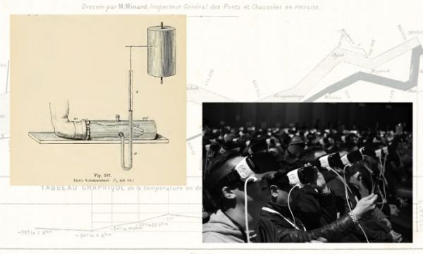 费希纳的想法很快的在他那个时代新研发的传感器中得以实现。这些传感器有着听起来很奇怪的名字,如波形示波器(kymographion)、速度计或者计时器,它们测量或以图像化的方式表示血压、视觉速度或反应时间。用19世纪法国生理学家艾蒂安-朱尔斯·马雷(Étienne-Jules Marey)的话来说,这些新仪器试图揭示隐藏的“自然语言”。