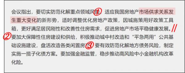 但是今天我不是说点大家说剩下的,今天就和大家分析政治局会议中的一句话,这句话每每咀嚼都能感受到一股强大的力量,叫:适应房地产市场供求关系发生重大变化的新形势。