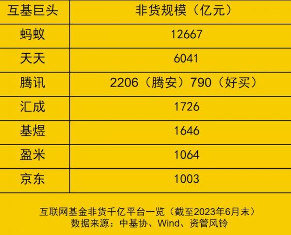 至今非货规模超过2000亿大关的仅有蚂蚁、天天(东财)、腾安(腾讯)3家,但蚂蚁的非货规模已是天天基金的两倍还多。