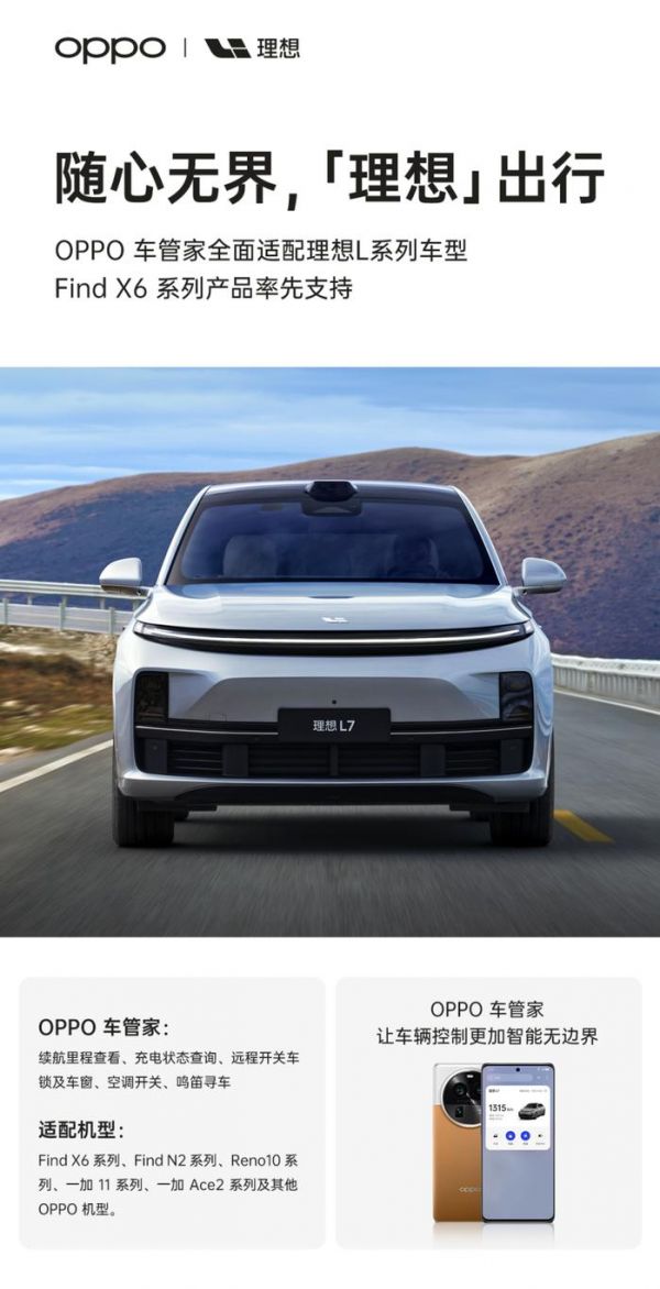 IT之家 7 月 31 日消息,今日理想汽车在官方微博上正式宣布,OPPO 智行车管家功能现已全面适配理想汽车 L 系列车型。IT之家附适配机型如下: