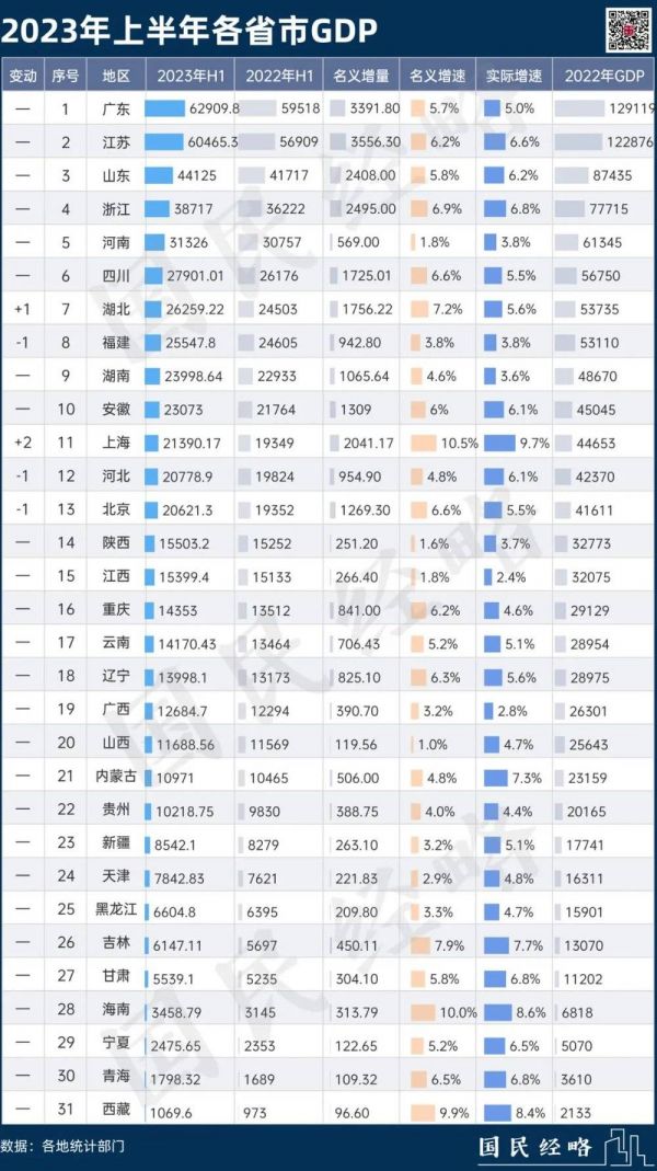 这是2023年上半年各大省份GDP数据: