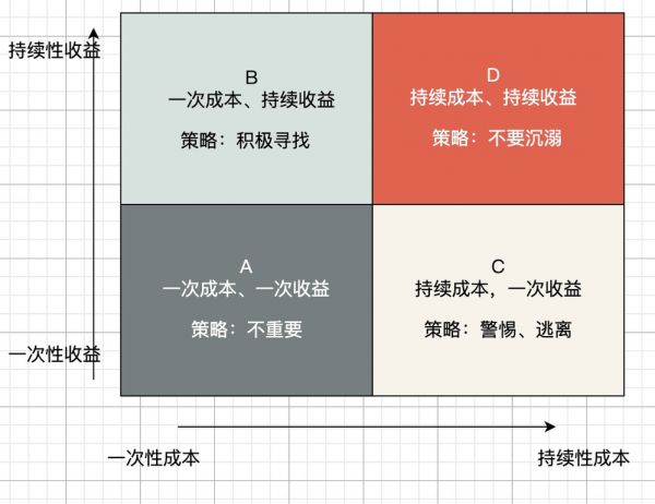 考量成本的时间属性:一次性成本、持续性成本。