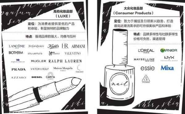 36个品牌、四大事业部(高档化妆品部、大众化妆品部、皮肤科学美容部和专业美发产品部)支撑起欧莱雅成为全球第一大美妆集团。