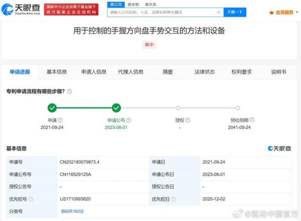 8月1日消息。天眼查App显示,华为技术有限公司申请的“用于控制的手握方向盘手势交互的方法和设备”专利公布。