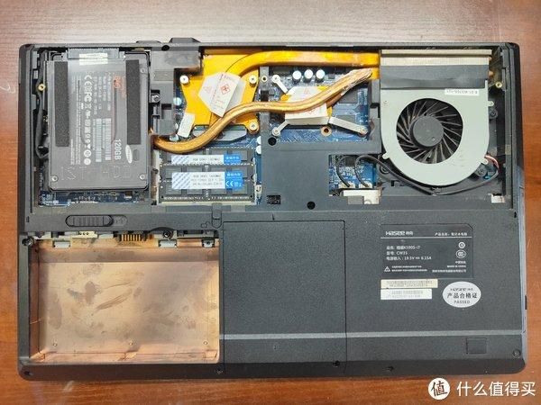 接着就是拆机,首先把电池卸掉,然后笔记本后盖螺丝卸掉,就能看到电脑内部。