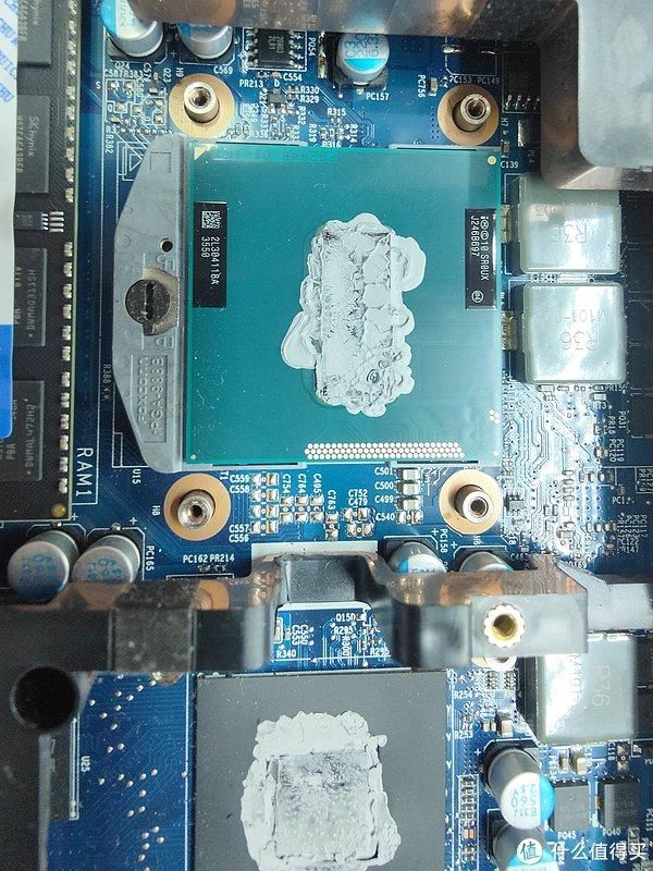 处理器4个螺丝,显卡3个螺丝全部卸掉就可以把散热铜片拿开,用手摸了一下硅脂果然是硬化了。