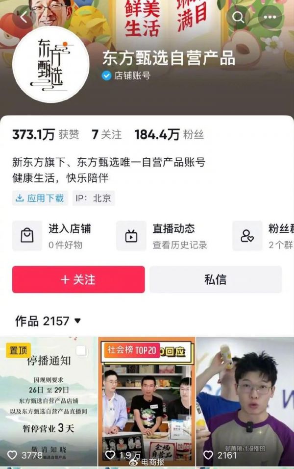 突发!抖音直播间被关,东方甄选最新回应