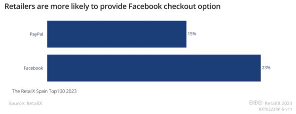 令人意外的是,西班牙消费者更倾向于使用Facebook结账,23%的零售商和品牌提供这一付款选项。34%的体育/休闲零售商和31%的电商交易平台也会提供这一付款方式。