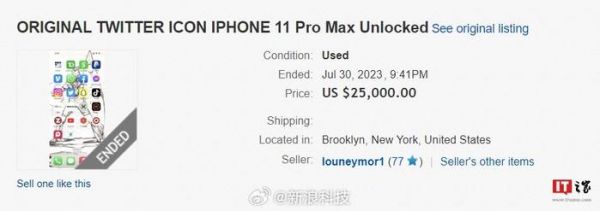 【#装有旧版Twitter二手机标价17.9万#】Twitter 在上周更名为 X,想要变为新 Logo 就必须更新应用,而有些未更新、仍为小鸟 Logo 的 iPhone 机型正被作为收藏品“变现”。IT之家在 eBay 发现,有用户上架了带有 Twitter 旧版 Logo 的 iPhone 11 Pro Max,售价高达 2.5 万美元(当前约 17.9 万元人民币)。(IT之家)#带蓝鸟图标推特的二手机标价17.9万#