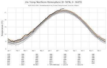 2023年刚开局,全球平均气温就以高出历史平均0.73℃的温度彰显着这一年的不凡。不过,一直到五月份之前,2023年的全球平均温度仍然与2022年不相上下,对于2023年温度是否能再创新高,不同机构的专家们意见仍统一。