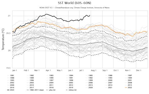 7月27日,在纽约联合国总部,秘书长古特雷斯就气候变化发出警告:“全球变暖的时代已经结束,全球沸腾的时代已然到来。”同一天,世界气象组织和欧盟委员会哥白尼气候变化服务中心表示:今年7月见证了有记录以来最热的三周,也出现了有记录以来最热的三天。全球变暖已经到了如此紧要的地步了吗?