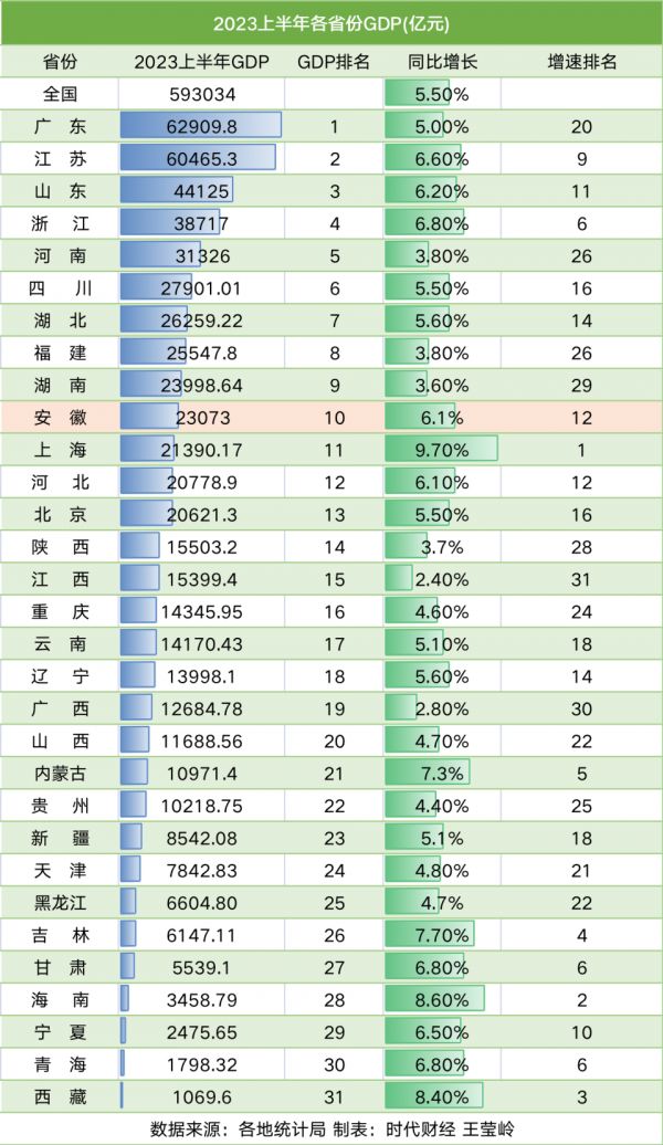 随着7月30日安徽省统计局发布2023年上半年经济数据,全国31省(不含港澳台)上半年经济“成绩单”已全部出炉。