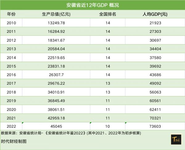 从14名跻身全国十强,安徽已由“总量居中、人均靠后”迈向“总量靠前、人均居中”。