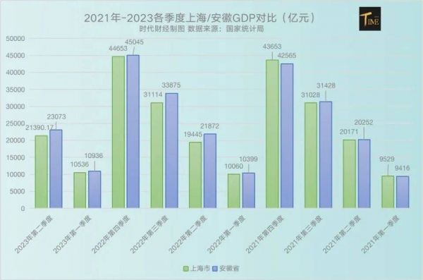 不过,安徽也曾有过下半年被上海反超的先例。2021年的第二、三季度,安徽省GDP均超过上海,位列第十,而全年总量却被上海反超,位列全国第十一。