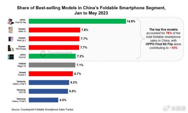 (2023年1-5月国产折叠屏销量排行榜,图源Counterpoint)