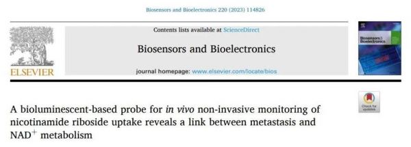 2022年10月29日,瑞士联邦理工学院Elena Goun团队在Biosensors and Bioelectronics杂志发表研究论文A bioluminescent-based probe for in vivo non-invasive monitoring of nicotinamide riboside uptake reveals a link between metastasis and NAD+ metabolism。该研究发现,一种维生素B3补充剂——烟酰胺核糖(NR),如果补充不当,反而会增加三阴性乳腺癌的患病风险,而且还可能导致癌症转移扩散到大脑。