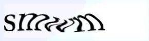 早期的Captcha验证码 "smwm" ,由EZ-Gimpy程序产生,使用扭曲的字母和背景颜色梯度|Wiki
