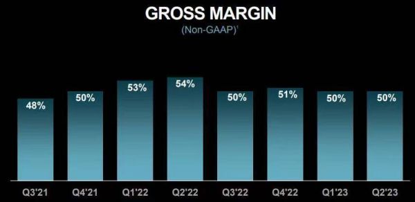 非GAAP口径下,剔除生产成本后,AMD预计三季度毛利率约为51%,略高于二季度的50%,和分析师预期的51.2%总体一致。