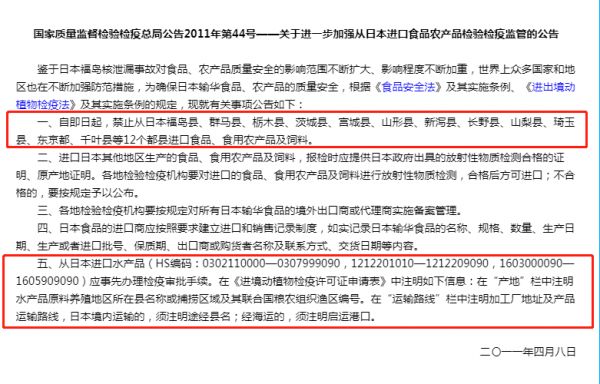 这次海关监管升级,除了继续延续2011年福岛核事故发生后的政策,禁止从日本福岛县、群马县、栃木县、茨城县、宫城县、新澙县、长野县、琦玉县、东京都、千叶县等10个都县进口食品、食用农产品及饲料。