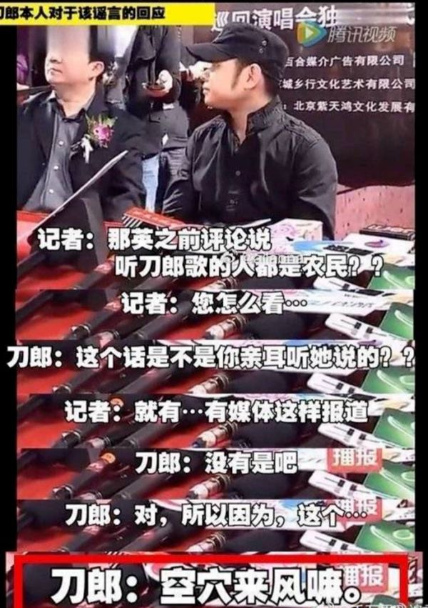 刀郎此前对于那英评论的回应截屏