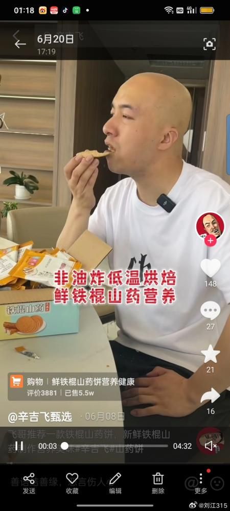 刘江对辛吉飞喊话:“请问曾经拥有上千万粉丝的大网红,你的食品安全知识不是白讲了吗?为了利益,不惜当两面人,去欺骗广大消费者不心疼吗?”