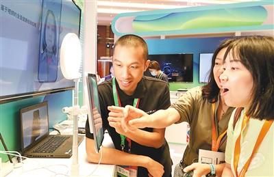 消费者在2023亚马逊云科技中国峰会上参观选购人工智能扫脸健康检测设备。 新华社记者 方 喆摄