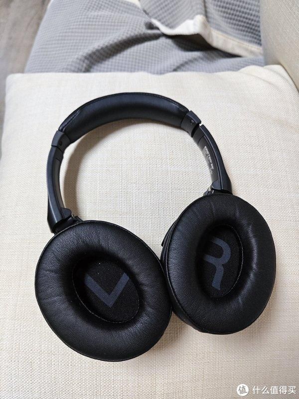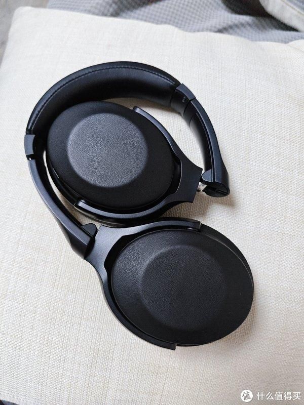 拿到手的时候耳机是折叠收纳的,也方便后续出去玩使用,整体摸起来是非常有质感的,然后它的皮革也没有什么的味道,对气味敏感的人闻了也不会头疼。包裹耳朵的部分包括头顶那块,都采用了很软的蛋白皮,戴久了也不累,当然,还是不要长期戴耳机比较好。