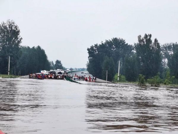 8月2日上午9点左右,已有不少来自全国各地的救援队陆续来到佟村东的桥头,桥头是G4高速涿州东出口直通涿州市区公路的一座大桥末端,由于被洪水阻断,所有车辆下高速后,只能行驶至佟村东的桥头。