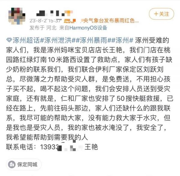 涿州的救援工作也在有序进行。