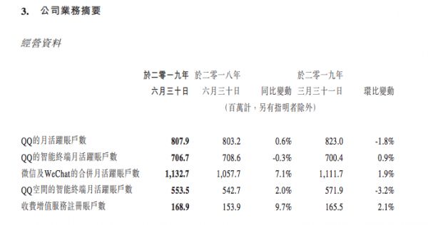 几项核心数据,QQ均是下滑。
