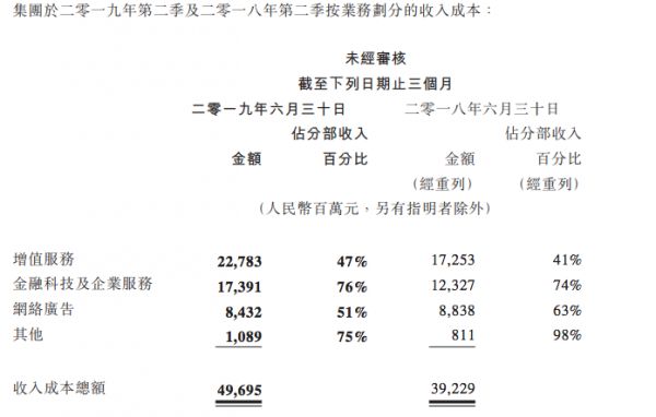 值得注意的是,这一季度腾讯还公开了金融科技及企业服务的收入成本。