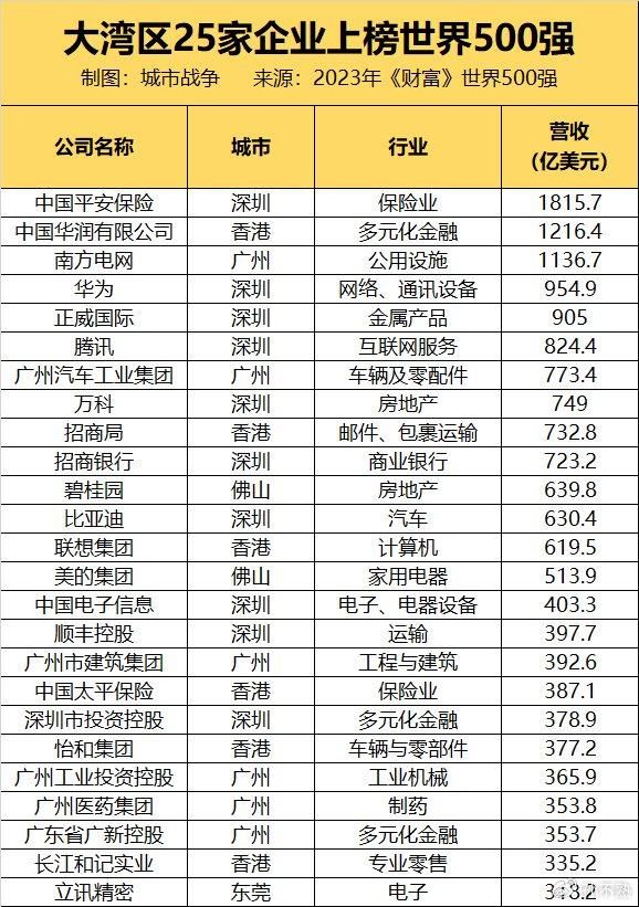 以下是大湾区25家上榜企业名单