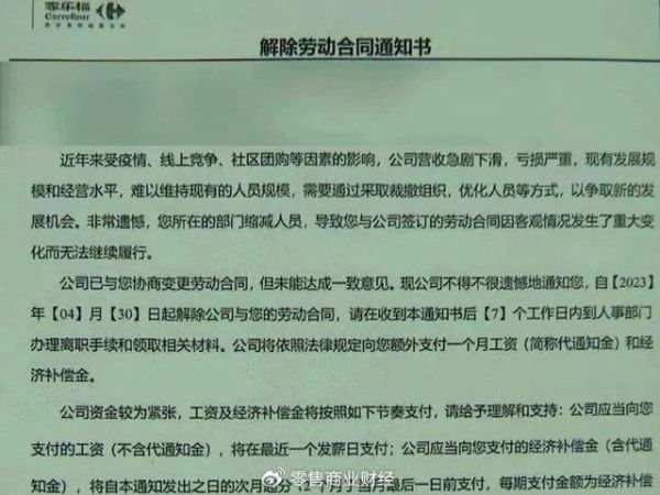 对此,北京家乐福相关负责人称,公司经营性现金流回笼未达到预期,使得部分离职员工补偿金暂时未能按时、足额到位,家乐福已经做好了员工的沟通工作。目前,企业正在积极转型发展改善经营,并尽最大努力筹措资金保障离职员工补偿金尽快进行支付。