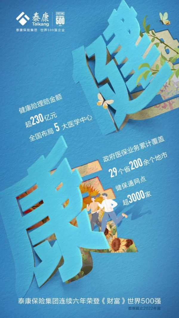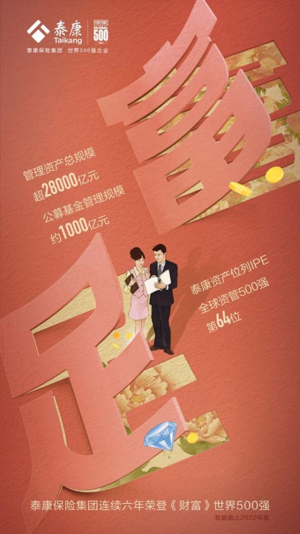 8月2日,2023年《财富》世界500强排行榜正式发布,泰康保险集团以348.37亿美元的营业收入位列榜单第431名,连续六年入围《财富》世界500强。