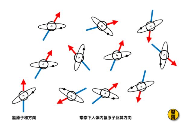 正常情况下,人体是不体现磁性的——因为体内氢原子的运动毫无规律可言,各个方向上的磁性互相抵消了。