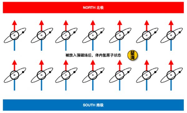 但是,当我们把人体放入一个极强的磁场内的时候,虽然氢原子依旧运动不停,但由于外界存在强磁场,人体内氢原子的方向便会和外界磁场一致,人体也开始有磁性了。