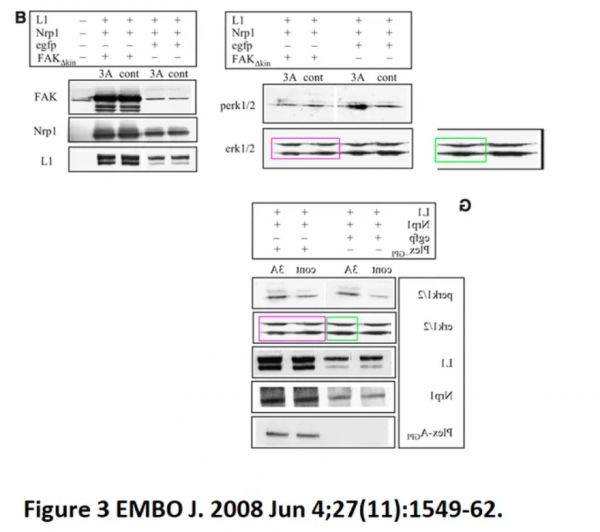 根据Elisabeth Bik的说法,几条带状图像似乎被镜像复制在图3中 截图来自EMBO J. 2008。