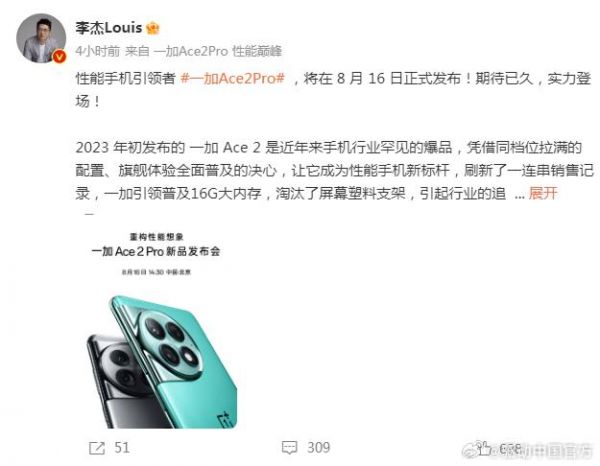 【#一加Ace 2 Pro定档# 8月16日14:30举行发布会】#一加Ace2Pro#