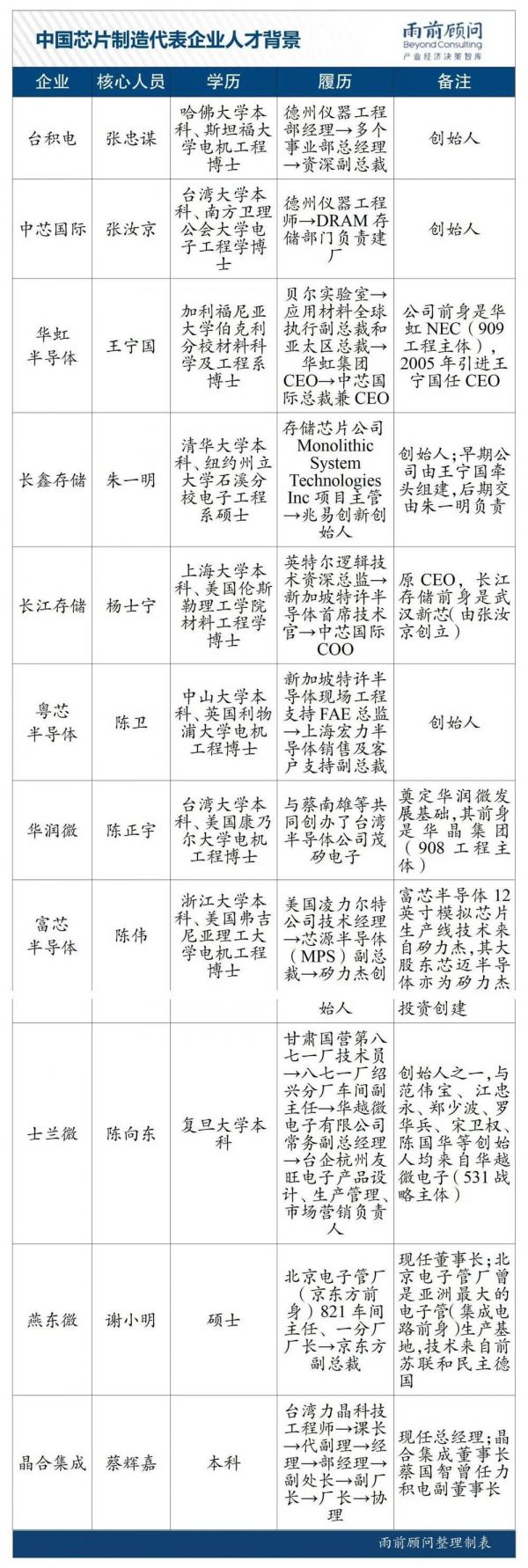 雨前顾问统计发现,我国芯片制造企业创始人或核心人员均是工程技术人员出身,大部分拥有博士学历,主要有两大来源: