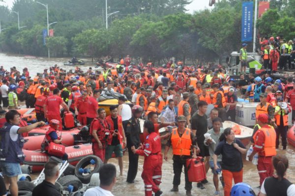 8月3日一大早,来自全国各地的救援队开始向涿州范阳东路集结,全力转移开发区工人、刁窝镇及附近村的村民。另有一部分救援队在范阳西路的西关桥附近下船,救援城西附近几个村的村民。