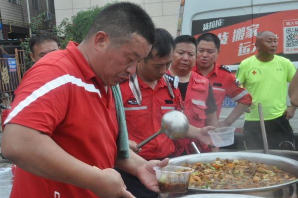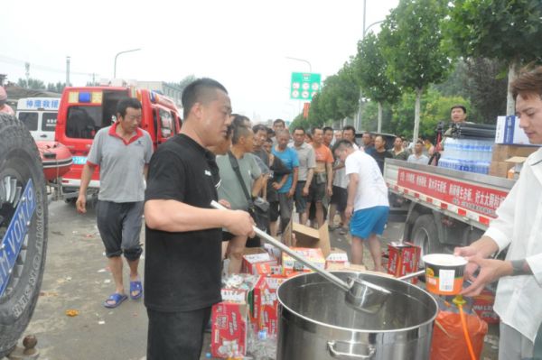 一位外地来的志愿者为救援队提供免费午餐 田国宝/摄
