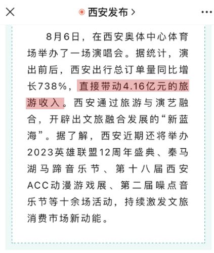 这场演唱会,为西安带来高达4.16亿的旅游收入。