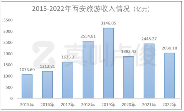 2022年西安实现旅游收入约2030亿元,在全国各大旅游城市中,这个数字已经排在了前几位,超过上海、杭州、南京等长三角城市。